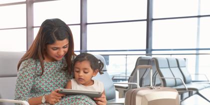 아동과 함께 여행하는 가족